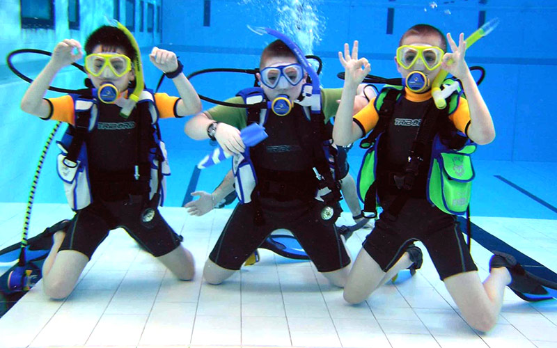 BLUE DIVE INTRODUCES YOUR KIDS TO THE WONDERFUL WORLD OF SCUBA. THEY’LL BLOW BUBBLES AND LEARN NEW SKILLS, IN SAFETY AND WITH FUN.